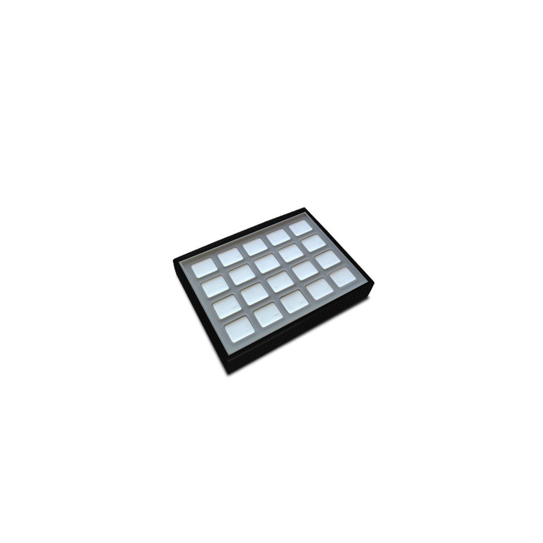 Batea de madera forrada en símil piel de alta calidad. Interior con 20 ventanas para pendientes.