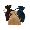 Bolsas de joyería económicas y elegantes para presentar bisutería y joyas. Las bolsas están fabricadas en tejido suede, ligero y agradable al tacto, son de forma rectangular, con cierre de cordón, y están disponibles en varios colores.