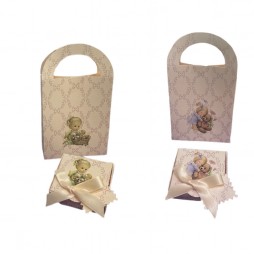 Estos conjuntos de packaging infantiles están fabricados artesanalmente en nuestros talleres. Las cajas y las bolsas están decoradas con estampados e ilustraciones dulces y combinados.