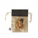 Pouches for jewellery made of raffia fabric with an ecological airdecorated with teddies in boy and girl version in the front of the bag, which give it a loving touch.