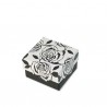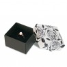 Jewellery boxes handcrafted with print cardboard for the lid and smooth interior. The boxes are composed of two pieces, the base in black and the cover printed with flowers with a background in different colours: anthracite, bronze, gold or silver.