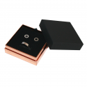 Prestige boxes are composed of two pieces with modern lines and soft touch, thanks to the material they are made of. The combination of the matt black cover and the glossy pink gold base makes it an avant-garde and sophisticated piece that matches with all types of jewellery.