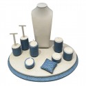 The Sfèric Oval Luxe is a jewellery display set with rounded and seductive shapes. The stylized lines of all the stands, and the fabric imitating snake skin, bring to this display set the definitive touch of elegance and sophistication.