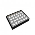 Wooden jewellery tray lined in high quality imitation leather. Inside with 15 cuts for rings.
