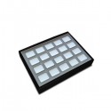 Wooden jewellery tray lined in high quality imitation leather. Inside set for 20 earrings.