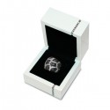 Sofisticados y femeninos, los estuches de joyería Diamonds están fabricados artesanalmente en madera lacada en blanco, con interior forrado en antelina negra de gran calidad, e incluyen una presentación en caja de cartón rígida en color dorado texturizado.