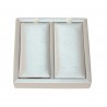 2 Cartones interiores y cubeta 1 Espacio - 4 Divisiones. Forrado con material imitación seda de alta calidad.
