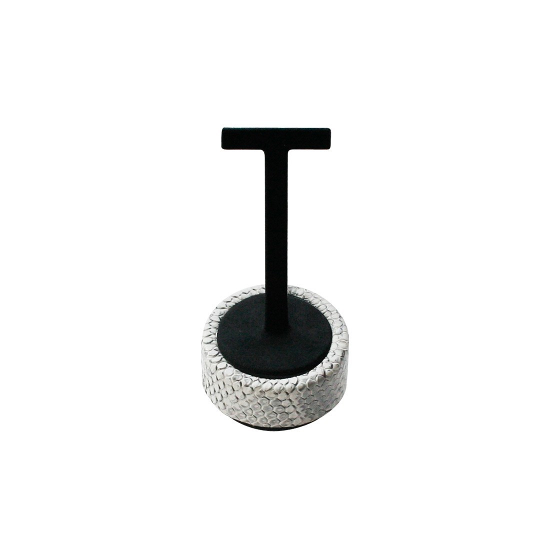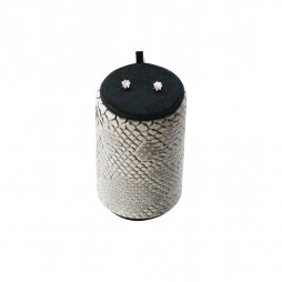 Expositor para pendientes presión, forrado con tejido polipiel simil piel de serpiente y chamel negro.